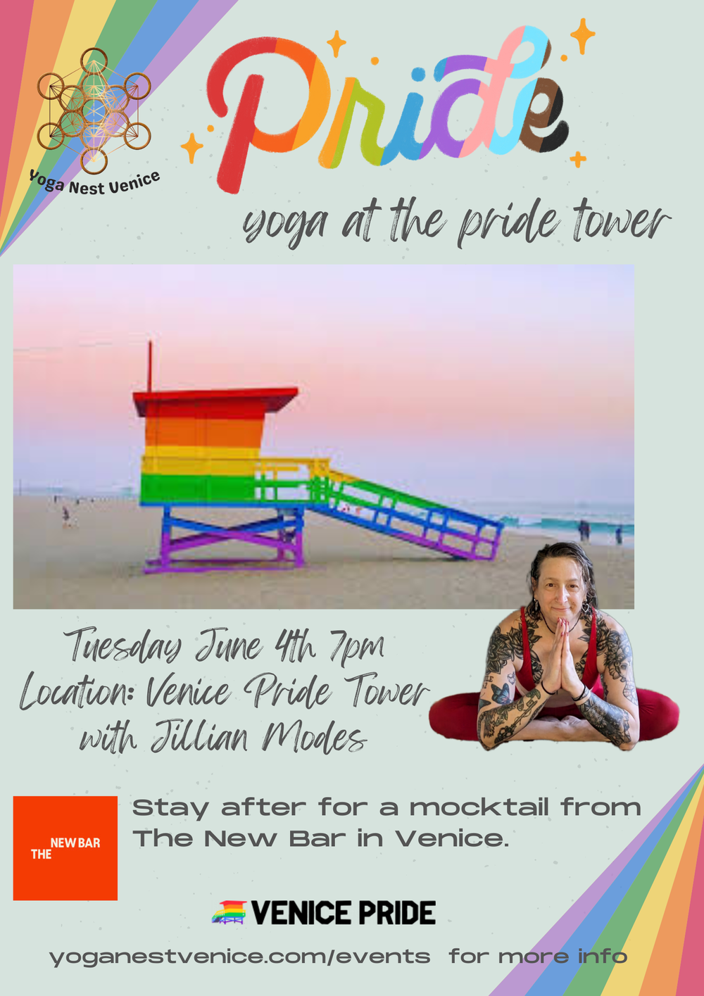 Yoga at the Pride Tower Tuesday, June 4, 2024 7:00 PM 8:00 PM Google Calendar ICS Join us at the Venice Pride Tower for an evening of Yoga Led by Jillian Modes a beloved Trans instructor who adds Yoga Philosophy, and humor to her classes making her classes a one of a kind experience. sign up THIS IS AN OUTDOOR & OFFSITE EVENT. Dress in layers in case it's a little chilly or windy. Bring your yoga mat and water bottle.