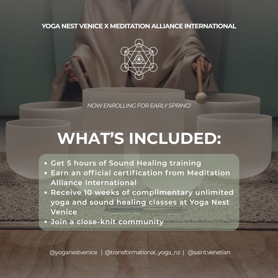 Join our 10-week Teacher Training to earn an official certification from the Meditation Alliance International Course, which includes 5 hours of Sound healing training